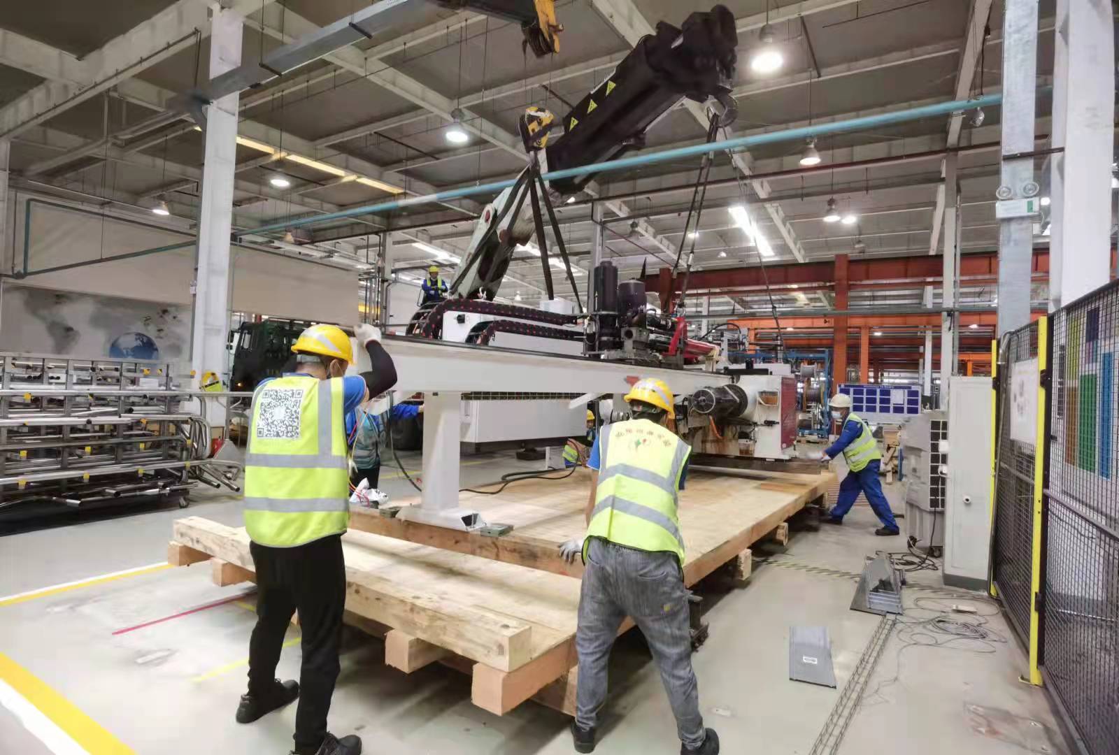 新能源設備屬于精密設備,在本次的搬運過程中我司選擇把設備搬運至木低平臺然后由設備吊平臺然后搬運至二樓車間平臺。